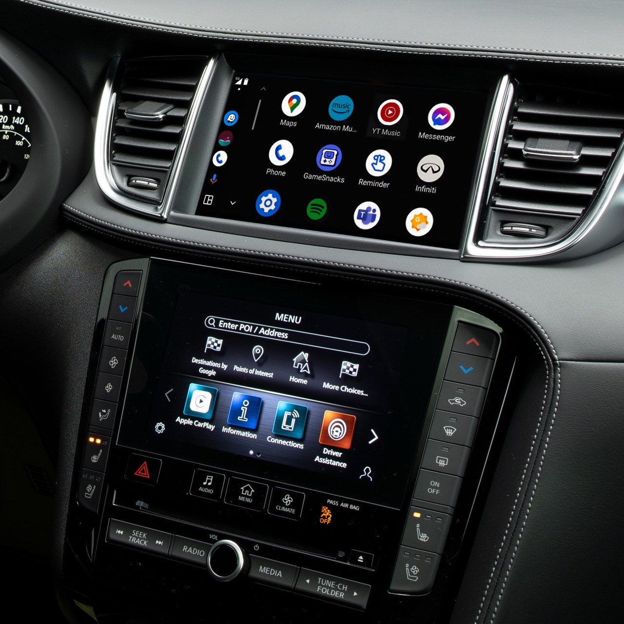 The INFINITI names, logos and slogans are trademarks owned by or licensed to Nissan Motor Co. Ltd. or its North American subsidiaries. Other trademarks and trade names are those of their respective owners. Google, Android, YouTube, Android Auto and other marks are trademarks of Google LLC. Compatible Android phone and compatible active data plan required. Apple CarPlay is a trademark of Apple Inc. Amazon, Alexa, Echo, and all related marks are trademarks of Amazon.com, Inc. or its affiliates.